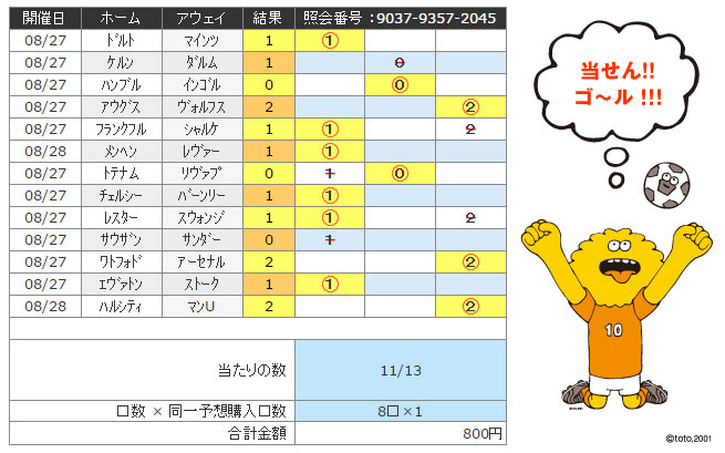 Totoくじの結果は